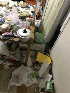 台所は本当にひどくて、テーブルの上は、
