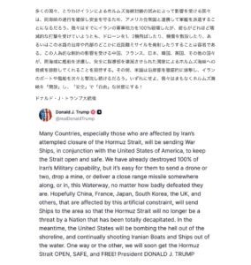 アメリカのトランプがSNS上で、